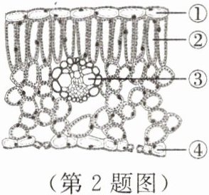 2. 某同学在做实验时所看到的叶片横切面如下图所示,其中②是( )