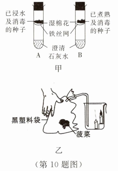 10. 生物小组为研究植物呼吸作用过程中物质转化情况,在适宜温度下进行了以下实验。请完成下列习题。
