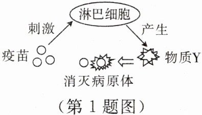 1. 接种疫苗后,很多同学对人体免疫知识更加重视了。小妍同学制作的相关概念图如下,图中的物质 Y 是( )