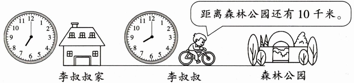 4. 李叔叔早上骑自行车去距家 30 千米的森林公园游玩。