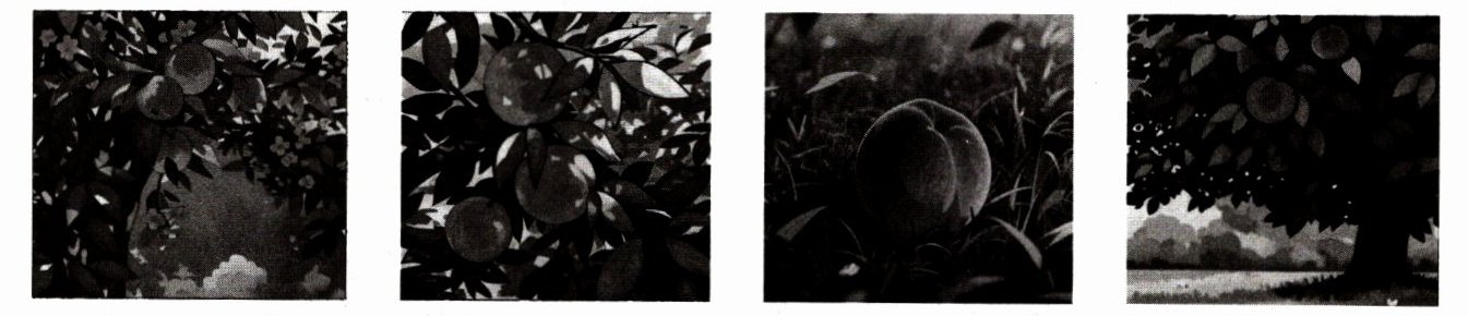 3. 果园里,桃子成熟了,小猴子奇奇馋极了!请你按照奇奇摘桃子的过程,在这四幅图下面的括号里标出序号。