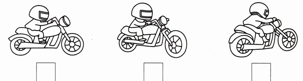2. 张老师看见一辆摩托车向他驶来,并从身边驶过,请根据时间顺序给三幅图编号,在□里标出①②③。
