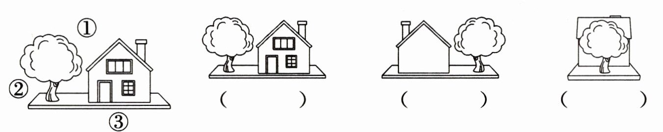 2. 下面各图分别是在哪个位置看到的?请把序号填在相应的括号里。