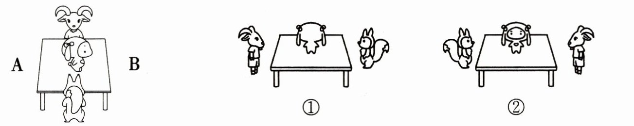 1. 下面哪幅图是小朋友看到的?在( )里面画“√”。