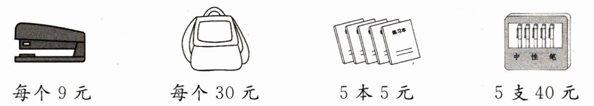 )① 买 2 个订书机和 1 个书包,一共需要多少元?