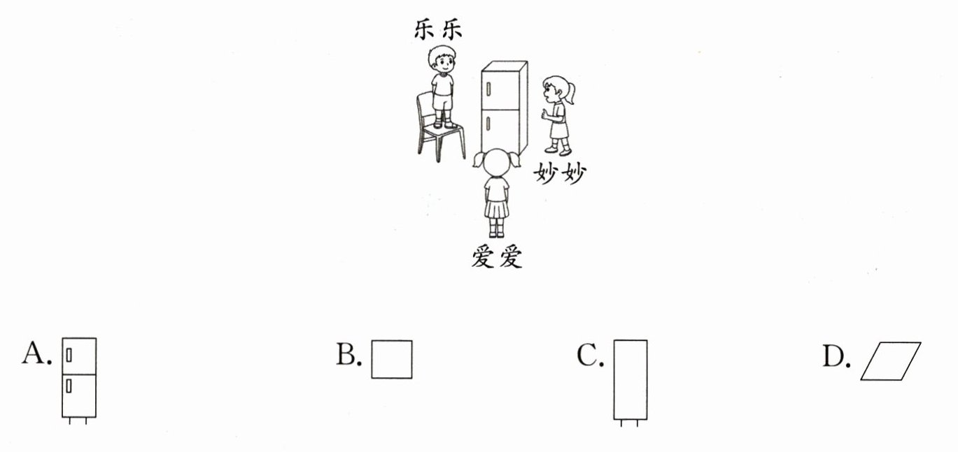 4. 抱着好奇之心,孩子们围着冰箱从不同的角度仔细观察。如图所示,乐乐看到的是(