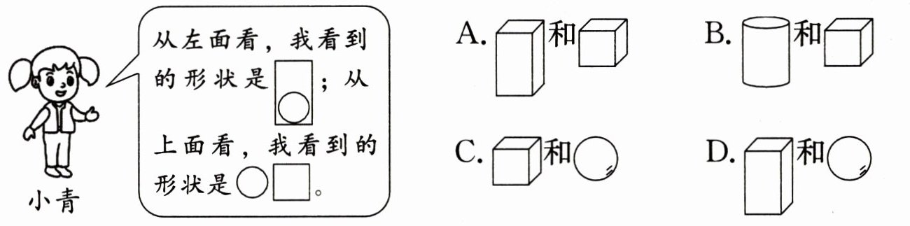 10. 爸爸在桌上摆了两个立体图形。根据小青说的话,这两个立体图形可能是(