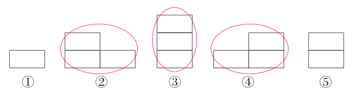11. 三个同样的纸箱都平放在地上,从上面可能看到哪几种情况?圈一圈。