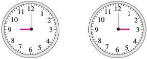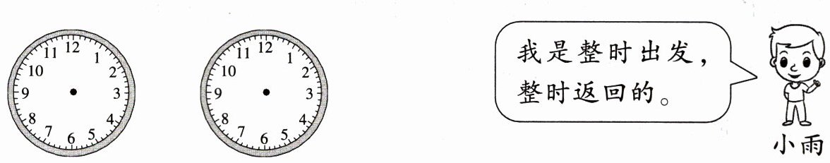 13. 小雨在上午时针和分针成直角时出发去图书馆看书,在下午时针和分针成直角时返回。小雨是什么时候出发的?什么时候返回的?画一画。
