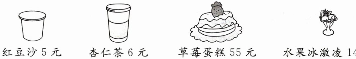 (1)1个草莓蛋糕的价格是1杯红豆沙的几倍?55÷5=11答:1个草莓蛋糕的价格是1杯红豆沙的11倍。