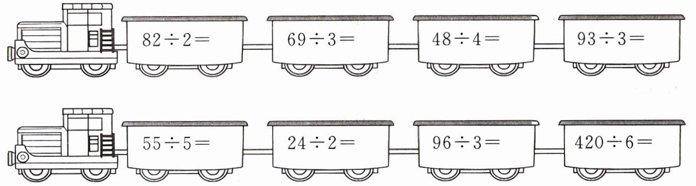 2.开火车。82÷2=41 69÷3=23 48÷4=12 93÷3=31 55÷5=11 24÷2=12 96÷3=32 420÷6=70