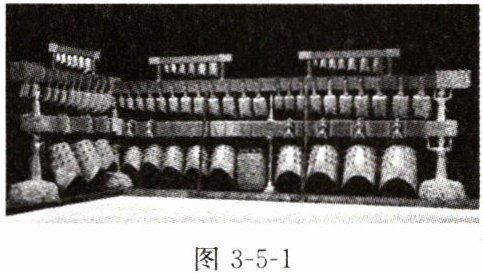 1. 图 3-5-1 所示的是战国时期的曾侯乙编钟,它是由六十五件青铜钟按大小编组悬挂而组成的庞大乐器。用相同力度敲击,大钟声音低沉、浑厚,小钟声音高昂、清脆,这是因为声音的