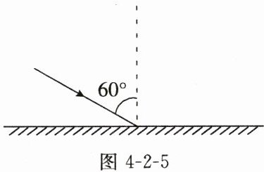 10. 如图4-2-5所示,一束光入射到平面镜上,入射角为$60^{\circ}$,请画出反射光线并标出反射角的大小。