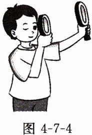 6. 如图4-7-4所示,取两个焦距不同的放大镜一前一后放在眼前观察远处的物体。下列说法正确的是(