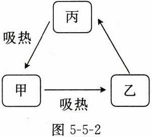 4. 固态、液态和气态是物质常见的三种状态,某物质通过放热、吸热在甲、乙、丙三种物态之间转化,如图 5-5-2 所示。下列分析正确的是(