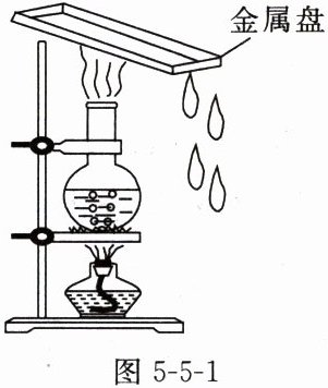 2. 小华用如图 5-5-1 所示装置模拟雨的形成。点燃酒精灯给烧瓶中的水加热,一段时间后,金属盘的底部出现小水珠,这是由瓶口上升的水蒸气