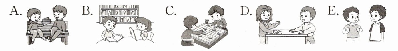 八、娜娜问妈妈什么是好朋友,妈妈给出了她的回答。请给下列句子选择相符的图片。