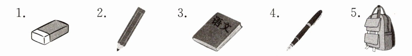 二、教室讲台上有些学习用品不知道是谁的,现在有同学来认领。听句子,找出每人丢失的学习用品,画“√”。