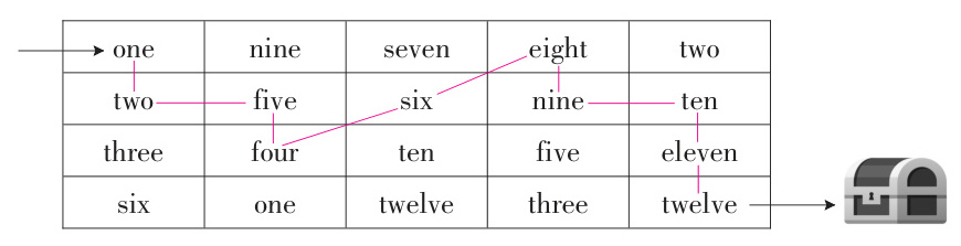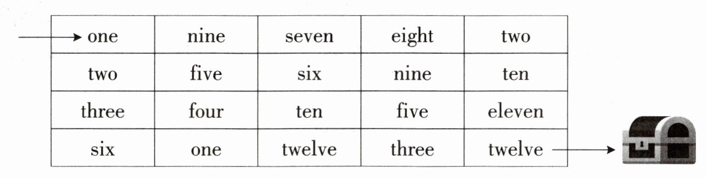 四、中场休息时,同学们玩了“迷宫寻宝”游戏。请按照“1—2—5—4—6—8—9—10—11—12”的顺序画出寻宝路线图。