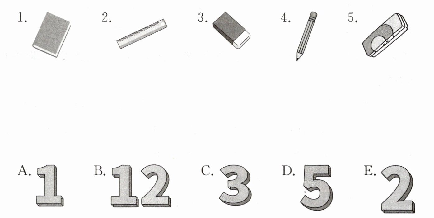 五、中途休息时,玲玲向朋友们介绍了她带来的书包里的物品。听短文,将物品与对应的数量连线。