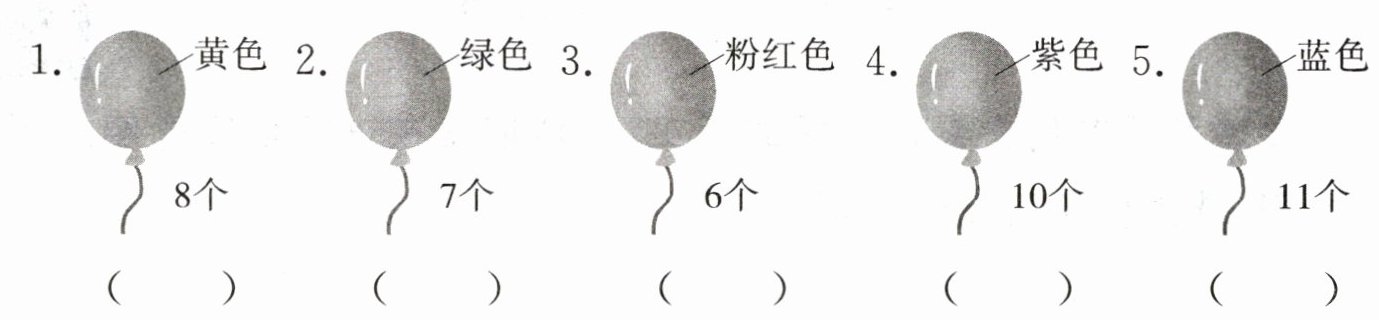 四、玲玲和朋友们比赛用气球做各种造型。听对话,在数量正确的气球下方的括号内画“√”,不正确的画“×”。