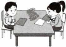 九、大家正在展示各自的手工作品。请判断下列对话与图片是否相符,相符的画“√”,不相符的画“×”。