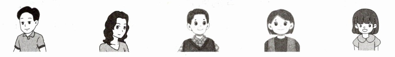 一、欢欢带 Lucy 参观自己的家,Lucy 被一面照片墙吸引住了。听短文,用数字 1—5 给下列图片排序。