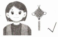 四、欢欢正在和 Lucy 谈论自己的家人。请判断下列句子与图片是否相符,相符的画“√”,不相符的画“×”。