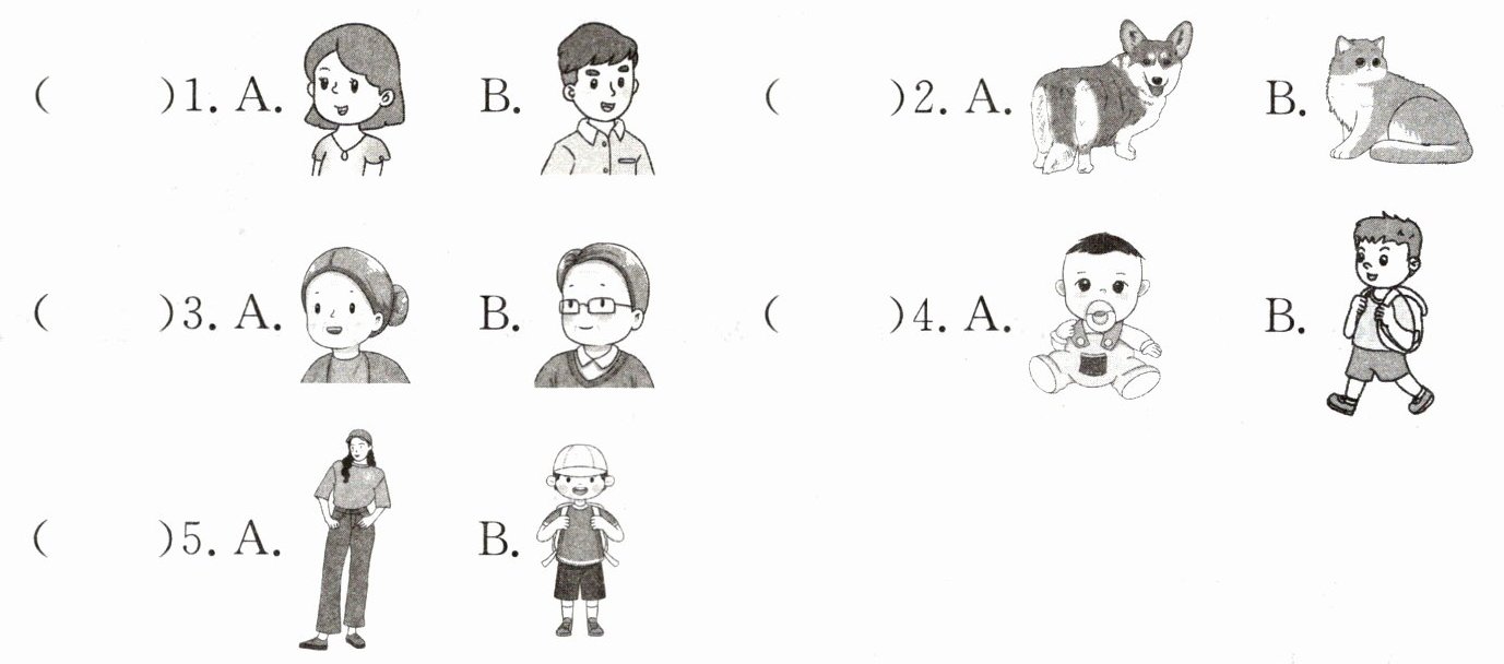 二、同学们正在欣赏各自的家庭相册。听对话,选择与你所听到的内容相符的图片。