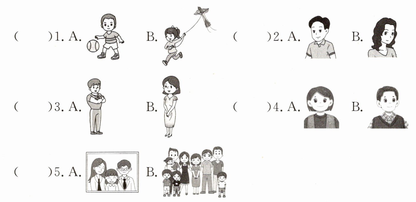 四、其他同学也纷纷介绍自己的家庭成员。听句子,选择与你所听到的内容相符的图片。