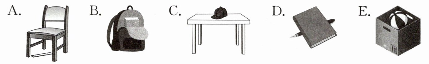 五、Amy 找不到自己的东西了,我们一起帮她找一找吧!请给下列对话选择相符的图片。