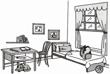 六、Sally 的房间是怎样的?看图,判断下列句子的正误,正确的画“√”,错误的画“×”。