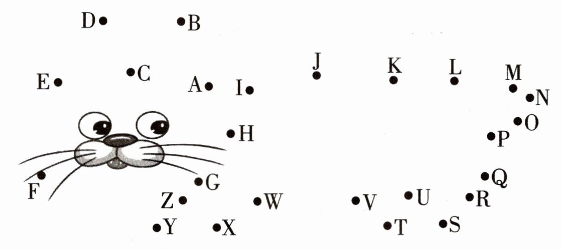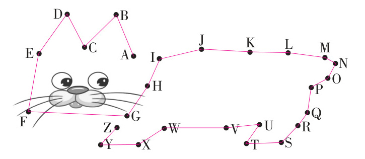 三、妙妙和英语角的同学正在比拼排列 26 个字母的速度。请将字母按照字母表的顺序连线,连好后,看看得到的是什么图形。