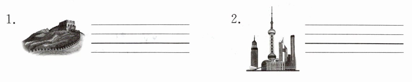 任务二:Mike 的好朋友寄来了他们各自家乡的明信片。请根据短文内容猜猜下面两张明信片分别是谁寄来的,将名字写在对应的四线三格里。