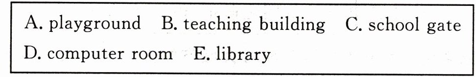 一、外国小朋友正在参观乐乐的学校,乐乐正在画一幅校园地图,让他们更好地了解学校不同场所的方位。听对话,将对应场所的序号填在圆圈里。
