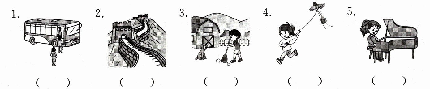 一、Cindy 和家人一边翻看他们的家庭相册,一边话家常。听句子,判断下列图片与你所听内容是否相符,相符的画“√”,不相符的画“×”。