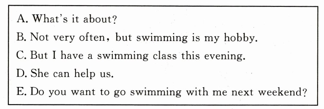 Linda: Don't worry. My mum will go with us. She is good at swimming. 5.