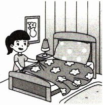A. make the bed B. clean the floor C. wash the dishes D. take out the rubbish E. feed the dog