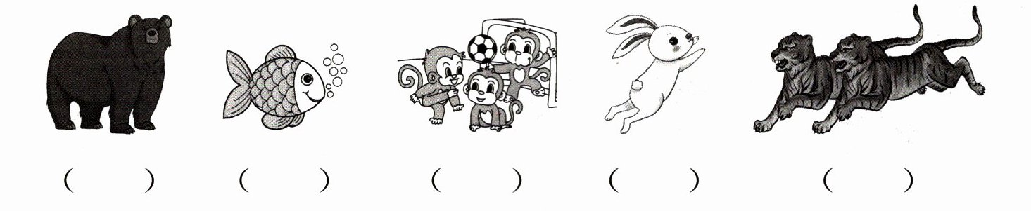 一、森林里在举行运动会,动物们可高兴啦!听句子,用数字 1—5 给下列图片排序。