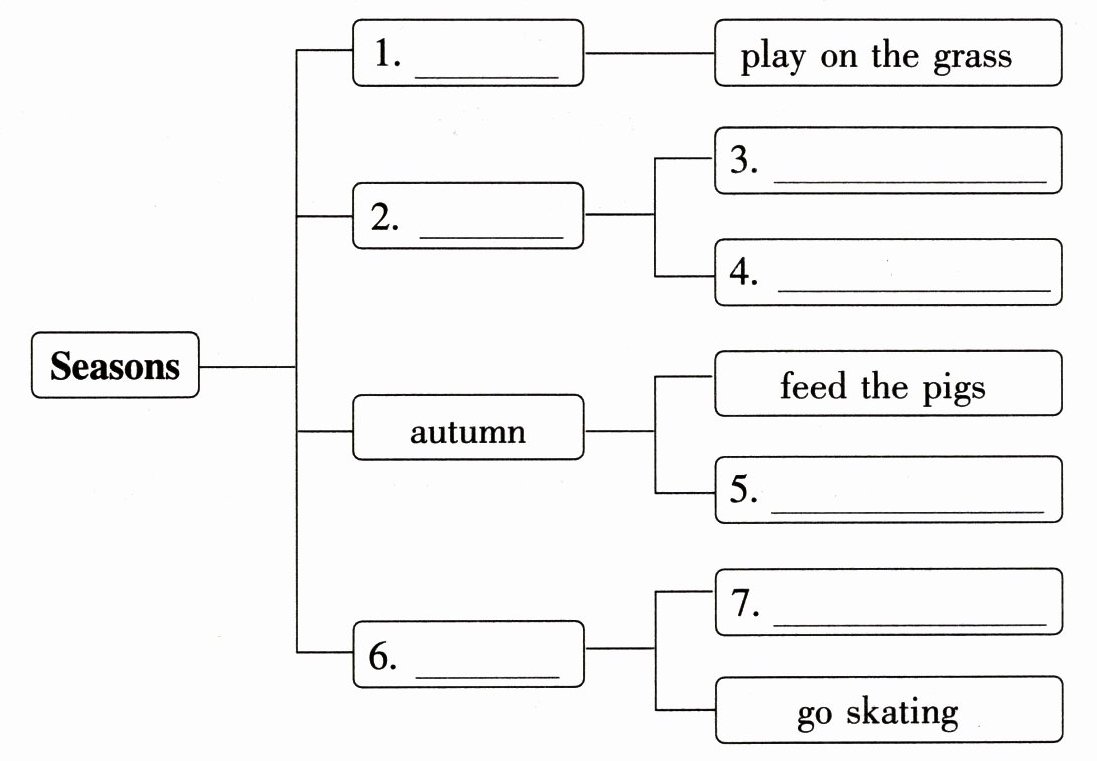 There are four seasons in a year in my hometown(家乡). In spring,there are many beautiful flowers and green trees. I can play on the grass with my friends. In summer,it's very hot. I often go swimming with my mum and dad. I like eating ice cream in summer. In autumn,farmers are very busy. My uncle is a farmer. He has a farm. I often help on the farm. I can feed the pigs and pick apples. I like autumn best. Winter is also fun. The weather is cold in winter. Sometimes it's snowy. I like snow. I can make a snowman. And sometimes I can go skating.
