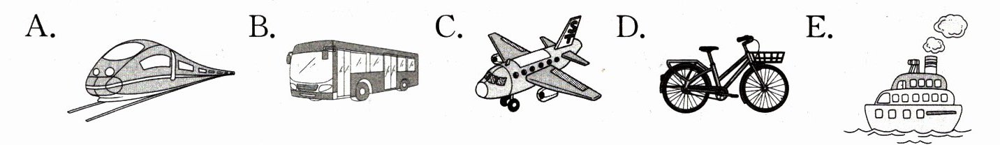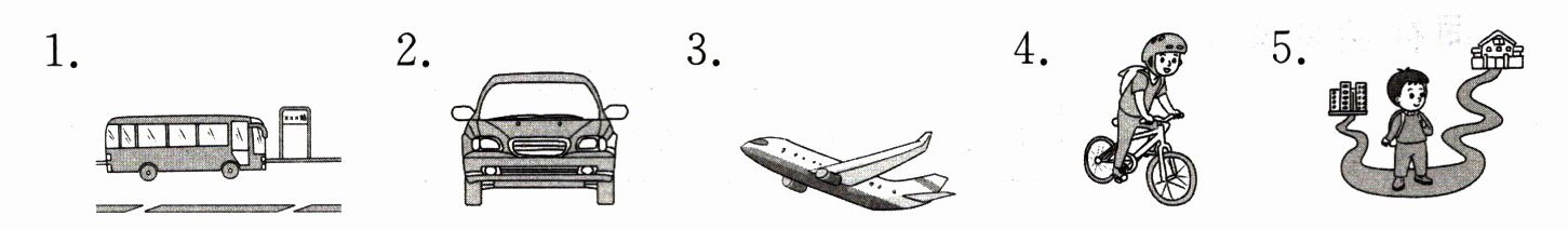三、生活中,我们经常要根据不同的出行需求选择合适的交通方式。请给下列句子选择对应的图片。