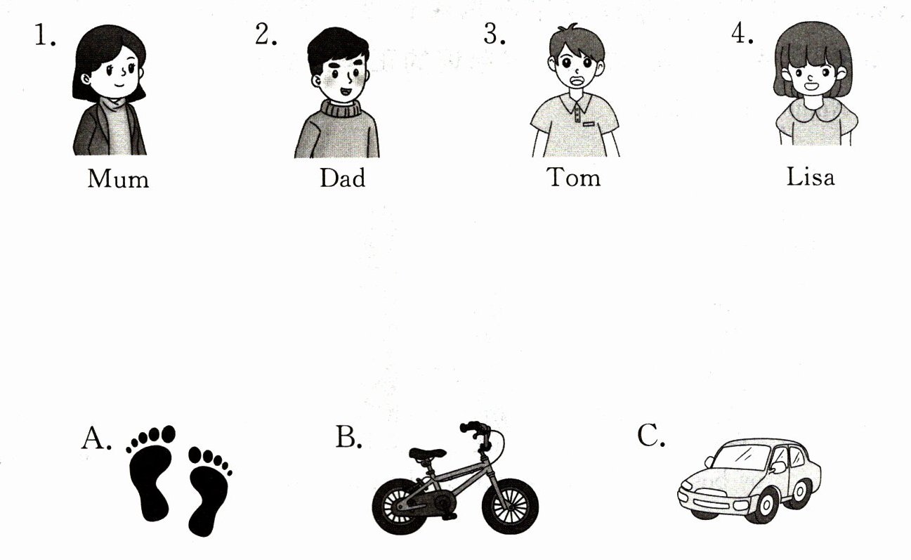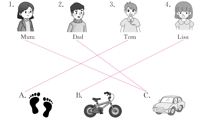 任务二:找出 Lisa 和她的家人出行的交通方式并连线。