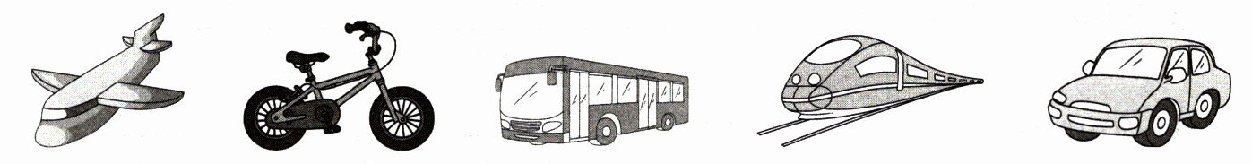 一、同学们分享了他们出行常选择的交通工具。听句子,用数字 1—5 给下列图片排序。