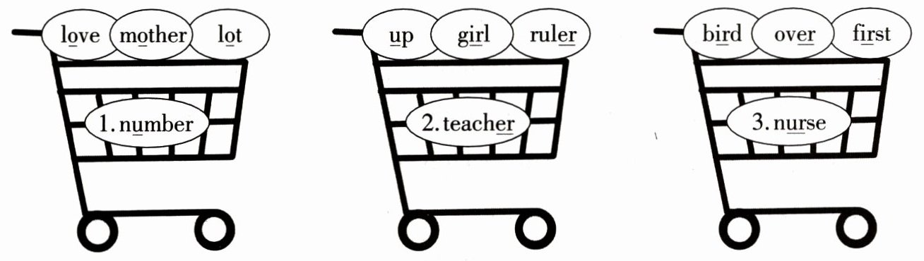 四、读一读,找出画线部分与所给单词画线部分发音相同的单词,涂上你喜欢的颜色。