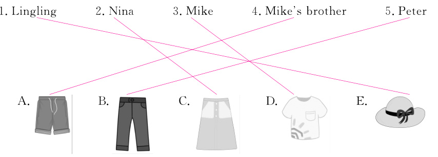 一、玲玲的学校组织了秋游活动,同学们的家人特意为他们准备了一些新衣物。听对话,将人物与对应的图片连线。