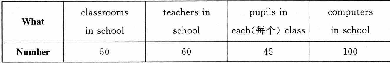 Mary:There are forty - five pupils in each class.And there are one hundred computers in our school.We can see them in the computer rooms.