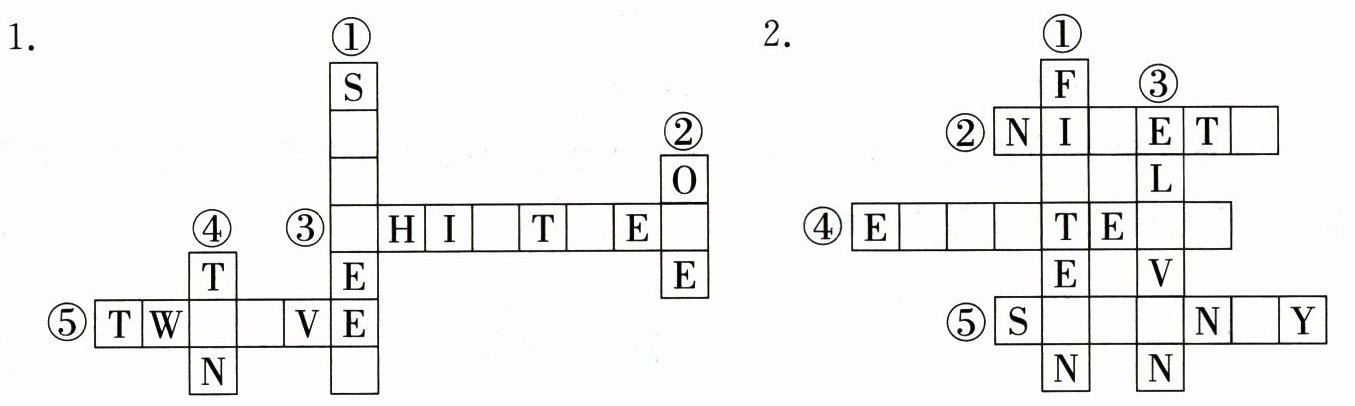 五、Tom 的学校的英语校报这期开设了数字字谜游戏专栏。请和他一起猜一猜数字并填空。