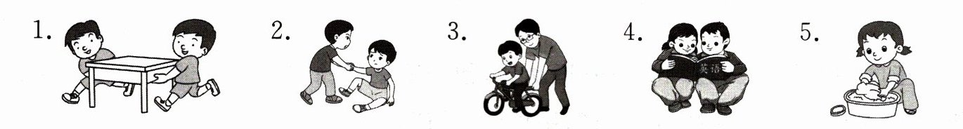四、赠人玫瑰,手有余香。刘老师鼓励大家在日常生活中多帮助他人。请根据图片提示,补全句子。