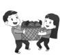 )5. The boy can’t carry the fruit. His friend helps him.
