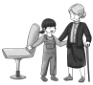 1. The old man can’t walk. Lucy helps him.